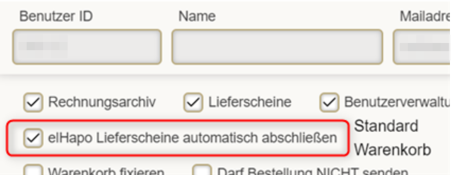 Wird hier also der Haken gesetzt und richtig gespeichert, ist das Einloggen im elHapo und das manuelle Übernehmen der einzelnen Lieferscheine nicht mehr notwendig.